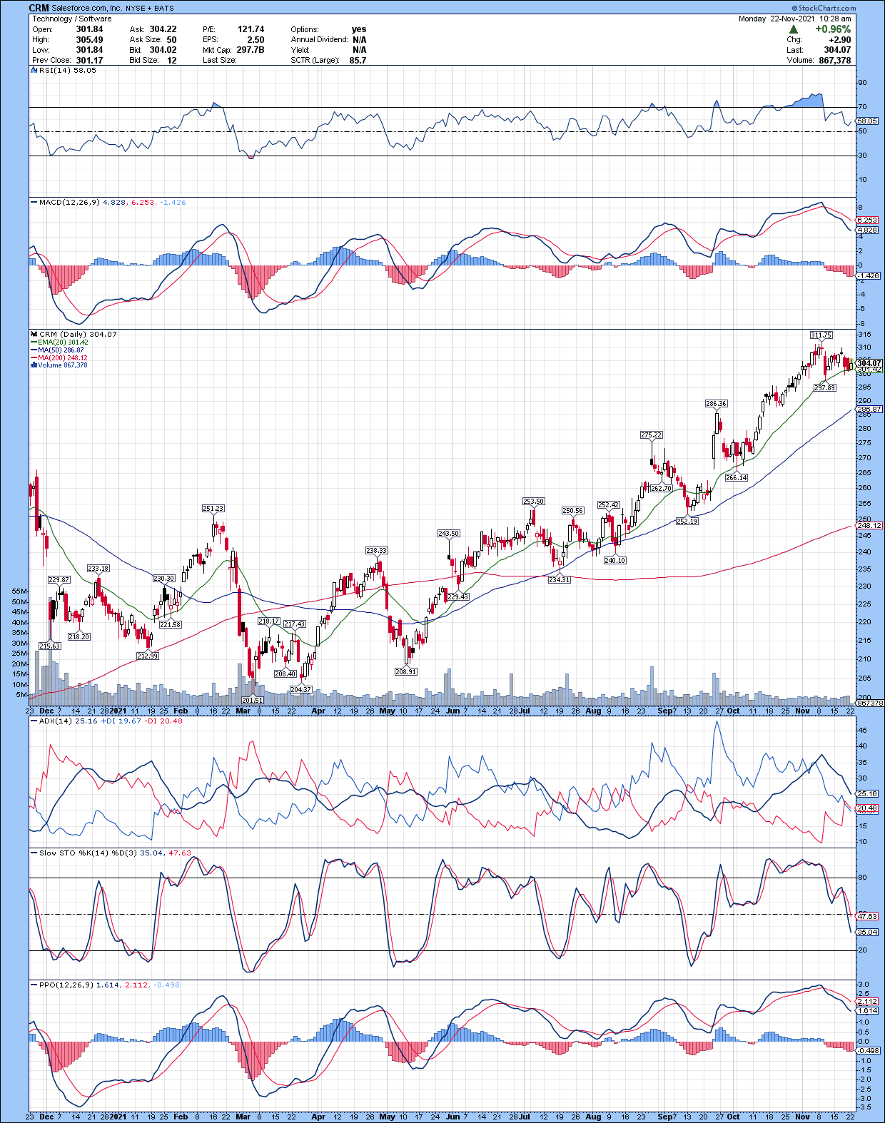 We are adding Salesforce.com CRM today--the original all cloud software play--to the Core Ultra Growth buy list under $306--its 25% CAGR is unstoppable over the next 3-5 years and we have to assume additional tuck-in acquisitions like its Slack.com deal just completed will expand its global dominance in the enterprise customer relationship management SaaS world.
