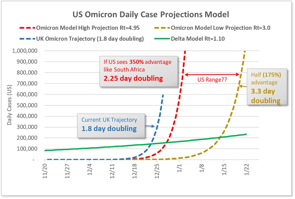 Final word: Omicron rise is NOT going away soon in the United States...here are the latest infection doubling rates (i.e, exponential growth rates) in the United States