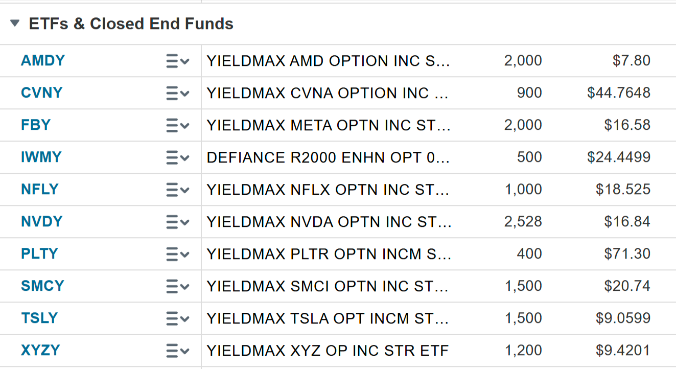 1) For YieldMax/Defiance ETFs, we maintain sell stops 10% under the 50-day or 100-day moving averages.