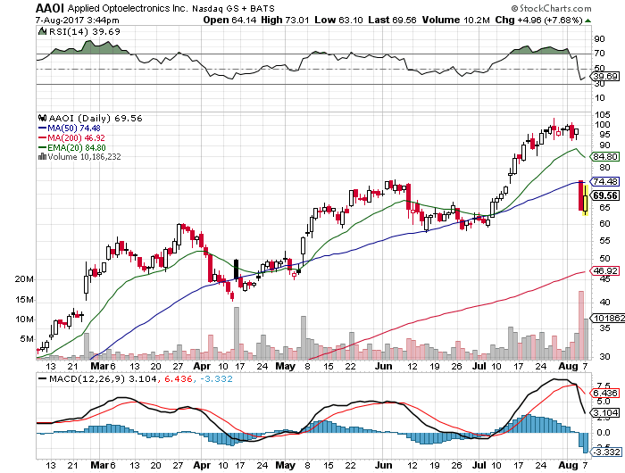 After a 34% drubbing on Friday (8/4), AAOI stock is popping 10% higher on today (8/7).