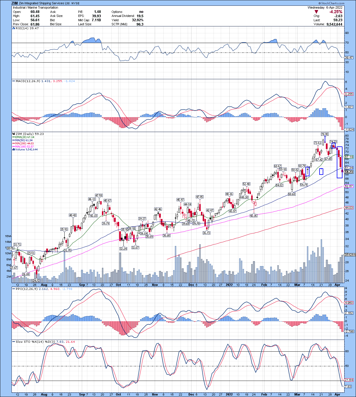 Let's see what the stock Gods give us over the next few days--BUT with $39.93 or earnings per SHARE and P/E of 1.48--- and Shanghai soon to get out of lockdown (Shanghai is a big port for $ZIM), I'd buy SOME tomorrow at the open if it rises--but I would buy an entire "unit" (unit is the $ amount of your average position--with a $500,000 portfolio we do 2% as our "unit" base case and 4% overweight for opportunities we are REALLY excited about) if it still falls.