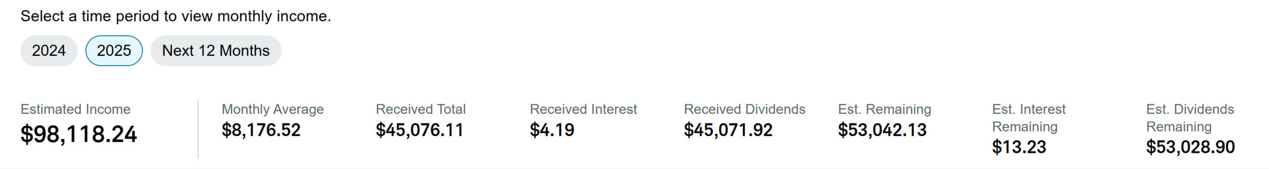 And here's the annual/ monthly income run rate according to Schwab (which is usually within 1-2% of actual amounts)