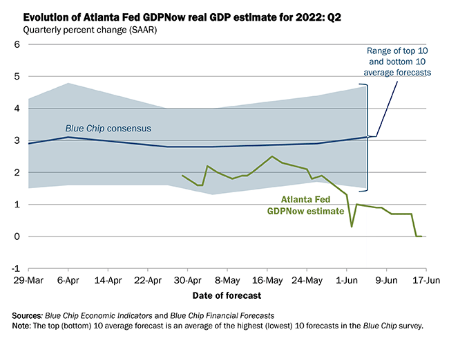 As I informed and advised you all on Monday this week (why does that seem a month ago?) with the negative 2.3% GDP print for Q1 2022 and the Atlanta real-time Q2 2022 GDP indicator at ZERO GDP growth (and when the negative Philly Fed manufacturing numbers + 75bps Fed Fund rise +negative home building permits+ 6.35% mortgage rise from 1.56% in Jan) . . .